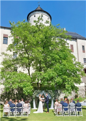 Hrad Rychmburk je místem pro svatební obřady v klidném a komorním prostředí historické památky. Nachází se v obci Předhradí, která leží v turistické oblasti Chrudimsko-Hlinecko, a umožňuje konání civilních i církevních obřadů v několika prostorách v hradní zahradě, elegantním koncertním sále nebo ve vysvěcené kapli. Snoubenci mohou přijet až na hradní nádvoří, k dispozici je zázemí pro poslední úpravy nevěsty a dbáme na dostatek soukromí během obřadu. Průběh svatby je řešen individuálně dle vašeho přání. Nabídku lze doplnit prohlídkou hradu pro svatebčany, hernou pro děti a vstřícným přístupem ke psím členům rodiny.